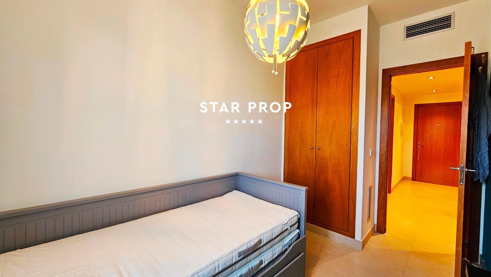 El piso cuenta con 3 habitaciones, incluyendo una habitación doble y dos habitaciones individuales, una de ellas sin ventana, ideal para transformar en un espacio de trabajo o almacenamiento. El salón, amplio y luminoso, se abre a una encantadora terraza, perfecta para disfrutar del sol del Mediterráneo o de agradables veladas al aire libre.
